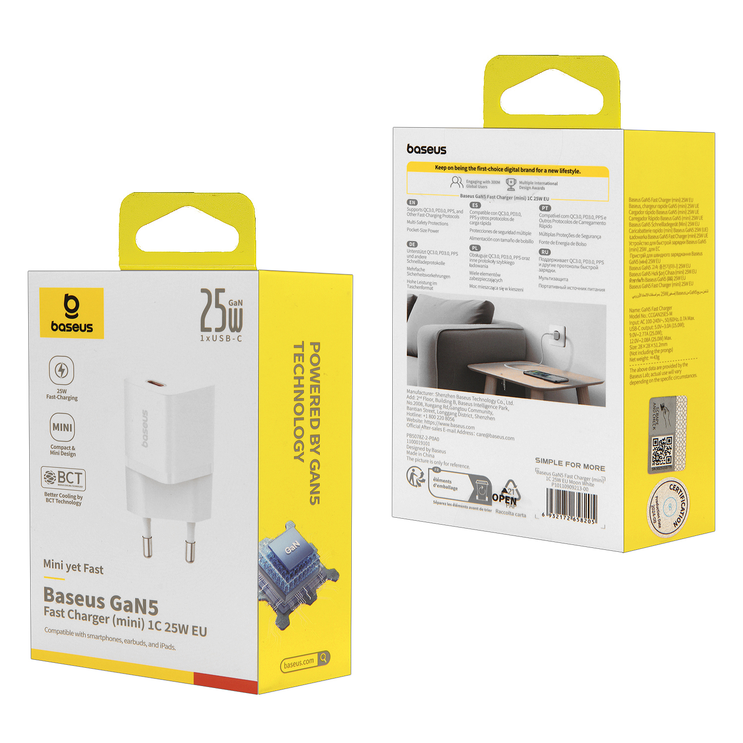 Переходник СЗУ на Type-C 25W GAN5 P10110909213-00 Baseus белый